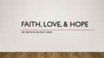 Faith, Love & Hope – Yes, they’re in the right order